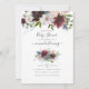 Trendy bordo - marsala e chá de fraldas azul marinho convite com sotaques de tipografia rosa-pincel e elegante.
