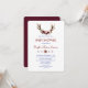 Um design russo boêmico para eventos especiais, todas as estações! Este design apresenta galhadas de veados, buquê de flores de marsala, flechas com flores de marsala e, no fundo, fundo de uma arma de fogo. Use a ferramenta Personalizar para adicionar suas informações. Para mais, visite por favor a minha coleção Burgundy Marsala Floral Antlers.