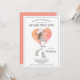 Um chá de fraldas de pêssego giro e caprichoso por convite por e-mail, com uma futura mãe caminhando com uma camada de guarda-chuva em um coração cor de pêssego e cor de pêssego sólida na parte de trás do convite.