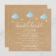 Apresentando nuvens azuis bonitas e estrelas ouros em cordas, em um fundo kraft rústico, este chá, borrifo ou chá de bebê é perfeito para todos os meninos que estão a caminho. Adicione seus detalhes de celebração em branco para criar o convite perfeito. Projetado por Thisnotme©
