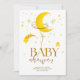 A design branca moderna apresenta uma forma de nuvem azul-aquática marinho com uma lua e estrelas amarelas com um quarto de lua amarela. Personalize com o nome da futura mãe.