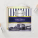 NYC Skyline Brooklyn Bridge, Boat Invitation Suite - Marinho Blue White Stripe / Blue Dourado Ribbon - Convite para Chás de fraldas Convites personalizáveis e acessórios com vista para East River da ponte Nova Iorque Brooklyn e prédio municipal com passagem de barco. tint. Ele também apresenta um padrão de faixa marinho azul e branca, uma fita marinho e dourada e uma etiqueta de gradiente branco com a escolha de uma moldura de pérola cor prateada ou dourada. A imagem está em tom azul e branco. O inverso está enquadrado em ouro. Este produto faz parte de um conjunto de designs correspondentes que são facilmente personalizáveis para muitas ocasiões e eventos. Se você precisar de placas RSVP separadas, Notas de agradecimento, Carimbos, ímanes ou outros acessórios, por favor verifique nossas outras listas. Se você não vir um produto correspondente ao qual você está interessado, ou gostaria de ver esse design em cores diferentes, com elementos de outros designs, ou com fotos diferentes do NYCisMyMuse que você vê em nossa loja, entre em contato conosco e ficaremos felizes em personalizar um design para você! Observe que este é um design gráfico e não contém tecidos, metais, gemas ou relevo. 2012 ©NYCisMyMuse