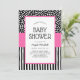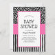 Convites Chá de fraldas branco-branco-preto-branco e rosa