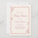Adicione um toque de brilho e charme ao seu chá de fraldas com este convite branco cor-de-rosa, com uma divertida borda ondulada, realçada com estrelas e caracóis brilhantes. A elegante letra de escrita, combinada com detalhes decorativos divertidos, torna esta design perfeita para celebrar a futura mãe no estilo — quer estejamos a receber um chá de tarde chic, um brunch aconchegante, ou um borrifador de bebês. Totalmente personalizável com seus detalhes de evento, este convite funciona perfeitamente para um chá de fraldas feminino ou um evento neutro em relação a gênero com um pop de cor-de-rosa. Impresso em papel premium, é uma guardiã que seus hóspedes vão amar.