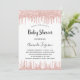 Para um chá de fraldas, comemorando uma menina. Um fundo branco chic. Decorado com rosa dourado, pingos de brilho sujo, aparência de pingar tinta. Personalize e adicione o nome da mãe e os detalhes da festa. O nome e o texto: Chá de fraldas são escritos com um script de estilo manuscrito