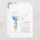 "É um menino" com um balão azul gigante e ouro e uma granja verde de eucalipto verde-verde-sábio