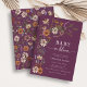 O Convite Burgundy "Baby In Bloom" para Chá de fraldas de Flor Selvagem exude elegância e charme. Mostra flores silvestres pintadas manualmente a aquarela em tons ricos de burgundy, ouro, creme e roxo emparelhados com verde-luxuoso. Perfeito para qualquer estação, as flores silvestres são dispostas em um quadro lateral, oferecendo um toque moderno e fresco. Com o texto burgundy sobre um fundo creme e um padrão burguês no verso, este convite combina versatilidade e sofisticação, fazer a escolha perfeita para celebrar seu bebê na florada.