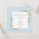 Com folhas de cor aquosa de eucalipto, este simples convite de chá de bebê elegante pode ser personalizado com o seu chá de fraldas especial ou detalhes de aspersão, com um fundo azul correspondente no verso. Projetado por Thisnotme©