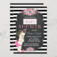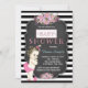 Lindas listras pretas, flores cor-de-rosa e convites para bebês de chalkboard. Este belo convite para chás de fraldas de quadro de referência é facilmente personalizado para o seu evento, adicionando os seus detalhes no estilo de letra e cor, bem como a redação da sua escolha.