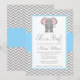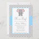 Convites Chá de fraldas Cinza Azul-Claro-Elefante Chevron