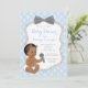 Arco convite para chá de fraldas de gravata de menino com adorável hispânico, índio, afro-americano, bebê étnico vestindo fralda e segurando um chocalho em um lindo fundo de diamante azul-bebê tufado com fundo de gravata de arco de prata. Este adorável convite para chás de fraldas e azuis bebê é facilmente personalizado para o seu evento simplesmente adicionando os seus detalhes no estilo de letra e na redação da sua escolha. Este é um design impresso sem gravata de arco real, diamantes, tufagem, brilho, etc.