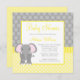 Um convite bonito e moderno do chá de fraldas do elefante. Caracterizando bolinhas e listras nas máscaras de amarelo, de cinzas e de branco. Aperfeiçoe para um chá de fraldas do menino, da menina ou do ponto morto do género.