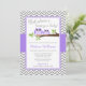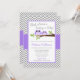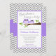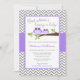 Um convite temático do chá de fraldas da coruja roxa moderna. Características de design uma coruja da mãe e do bebê que senta-se em um ramo, em um teste padrão cinzento da viga e em uns acentos do roxo do lilac.