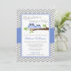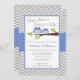 Convites temáticos do chá de fraldas da coruja moderna da pervinca. As características de design uma coruja da mãe e do bebê que senta-se em um ramo com uma viga cinzenta modelam.