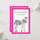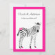 Um belo convite de chá de fraldas rosa-quente e zebra negra para uma menina. Personalize esse chá de fraldas de zoológico com uma zebra cinzenta com um arco rosa bonito e cascos rosas embaçados acrescentando o nome da mãe para ser e informação de festas. ©Party