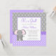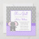 Um convite bonito e moderno do chá do bebé do elefante. Caracterizando bolinhas e listras nas máscaras de roxo, de cinzas e de branco.