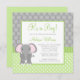 Um convite bonito e moderno do chá de fraldas do elefante. Caracterizando bolinhas e listras nas máscaras de verde, de cinzas e de branco. Aperfeiçoe para um chá de fraldas do menino, da menina ou do ponto morto do género.