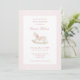 Convide os entes queridos a chá da sua menina com doçura com este clássico convite para chás de fraldas cor-de-rosa com ilustração de cavalo de balanço, pinstripes de rosa mole e tipografia de eterno. A delicada paleta colorida e a design nostálgica a tornam ideal para um chá de fraldas tradicional ou temático de livros de histórias. Totalmente personalizável com seus detalhes de eventos, é uma escolha encantadora para uma reunião confortável em honra da futura mãe.