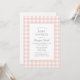 Convide amigos e família para compartilhar a alegria da sua chegada com este elegante convite de chá de fraldas de gingham rosa.