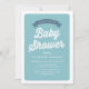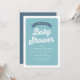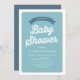Convite personalizável para chá de fraldas retrorreflector. Este convite para chá de fraldas azul apresenta tipografia de vintage e tipografia simples. Personalize adicionando os detalhes do evento. Este convite de chá de fraldas de safra está disponível em outras cores.