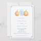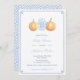Vaso de jarro de gengibre azul e branco flanqueado por duas abóboras de aquarela e uma borda de "chave grega" e um backer de padrão. Elementos de aquarela foram originalmente pintados por mim. Eu defini o modelo para um chá de fraldas, mas todos os campos de texto são personalizáveis para suas necessidades. Você pode alterar a cor de contraste da borda da Chave Grega na frente e o padrão no verso (mostrado aqui como azul claro) para qualquer cor que você quiser digitando a ferramenta design (abaixo da área de personalização do texto, clique para "personalizar mais") e, em seguida, alterando a cor de fundo em cada lado.