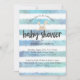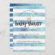 Banda branca e azul, fundo para celebrar um chá de fraldas temático para um bebê. Um coelho bronzeado aparece logo acima do texto do "Chá de fraldas". Editar áreas de texto para criar uma parte de chá de fraldas exclusiva e especial.