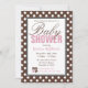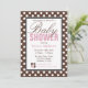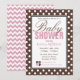Convites de chuveiro para bebês, bonitos e na moda, com bolinhas brancas sobre marrom na frente, e um padrão chevron cor-de-rosa e branco zigzag no verso. Personalize com os detalhes do chá a ser da Mamãe e escolha o tipo de papel também!