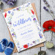 Celebrar a chegada de um pequeno com esse charmoso... Um pequeno Wildflower está no convite para o chá de fraldas, perfeito para uma celebração de primavera ou verão. Apresentando uma bela mistura de flores de vassoura em blues, verdes, pêssegos, púrpura e vermelhos, esta design é um tributo artístico aos florescentes da natureza. As flores de aquarela, incluindo papoilas, flores de milho, nódulos, botões de billy e cosmos, criam uma atmosfera balbuciosa e alegre, ideal para acolher um menino. A moderna escrita da tipografia azul acrescenta um toque de sofisticação enquanto complementa a beleza natural das flores. Flores de aquarela únicas da artista Catherine Sweetman, este convite oferece modelos fáceis de usar para uma aparência de chic boêmica totalmente personalizável e única. Quer você esteja hospedando uma reunião íntima ou uma grande celebração, este convite define o tom perfeito para uma futura mãe especial. Com seus impressionantes detalhes de flor silvestre de aquarela, é a maneira ideal de anunciar a chegada de uma nova flor silvestre com estilo, charme, e um toque de elegância moderna.