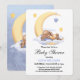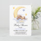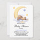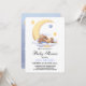 Chá de fraldas de convite decorado com um belo coelho dormindo na lua.
