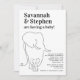 Convites modernos de chá de bebê, preto e branco. A design minimalista apresenta uma ilustração de arte desenhada à mão de uma mamãe e de um elefante bebê. A simples tipografia pode ser facilmente personalizada com os detalhes do chá. A decoração e os presentes de chá de fraldas correspondentes podem ser encontrados em loja.
