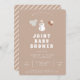 Um convite para chás de fraldas conjunto neutro moderno, com ilustrações de uma fralda, garrafa e pacificador.