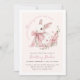 Bem-vinda a coquetinha com este convite de chá de fraldas encantador e elegante. Apresentando um belo coelho aquoso com um arco rosa e delicados florais cor-de-rosa, este design é perfeito para uma celebração com primavera ou Páscoa. Com um toque coquete e moderno, este convite dá o tom para um chá de fraldas e charmoso.