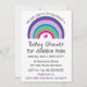 Um bonito arco-íris pastel com um design de coração de borboleta rosa. Repetindo o padrão do arco-íris nas costas com o gênero do anúncio do bebê: "É uma Garota" ou "É um Menino".