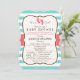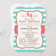 Convites Chá de fraldas Coral, Aqua e Stripes Brancas