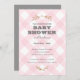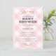 Design de chá de fraldas, russa e moderna, apresentando texto de marinho em fundo de xadrez de gingham de rosa claro. Perfeito para um verão ou um chá de fraldas temático do país.