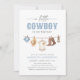 Convide amigos e família para comemorar um pouco no caminho com este convite de chá de fraldas temático do cowboy.