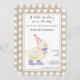 "Um pouco de patinação está a caminho". Celebrar com esta festa de chá de fraldas de pato fofo! Um pequeno patinho de aquarela com chapéu de aniversário. Gaiola castanha.