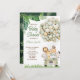 Convite Para Chás de fraldas Selvagens, Convite Editável Para Animais Safari. Celebre sua chá de fraldas com este convite de festas com o tema safari caprichoso. O design apresenta um grupo de adoráveis animais da selva e um exuberante verde aquícola tropical