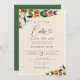 tema do chá de fraldas de citros florais de aquarelas com verde-aquarela e laranjas. O texto e as cores podem ser editados.