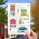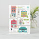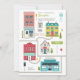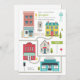 Convite neutro de chá de fraldas com ilustração de uma cidade com edifícios, estradas, placas de sinalização, árvores, telefone público e hidrante de incêndio. Personalize o texto, incluindo o nome da sua cidade natal.
