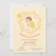 Uma garotinha está a caminho! Uma nova aventura está prestes a começar! Vamos chá a futura mãe! Este convite para o chá amarelo-bebê, mínimo mas atrativo, é perfeito para a ocasião. Ele apresenta flores e folhas entrelaçadas e um pássaro pequeno ao redor de um bebê fofo vestido de amarelo e bolinhas. No verso, há uma coroa semelhante e o pássaro carregando um coração no bico. Este modelo de convite para chá de de menina pode ser facilmente personalizado com os detalhes do seu chá de fraldas e você pode alterar a fonte, o tamanho ou a cor de qualquer texto.