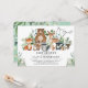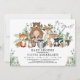 Celebre a chegada da sua pequena selvagem com este convite para chás de fraldas mimetizado da floresta. O design apresenta um grupo de adoráveis amigos da floresta (veado, urso, guaxinim, raposa, coelho, esquilo, caule e coruja) e verde-água rústico.