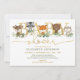 Este adorável convite para o Chá de fraldas ilustra adoravelmente os doces animais florestais e elegante verde-aquarela em verde e ouro