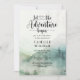 Que a aventura comece o convite do chá de fraldas de aquarelas com floresta e montanhas paisagem selvagem na névoa, com tipografia do roteiro de caligrafia. Étero e mágico.
