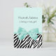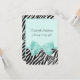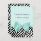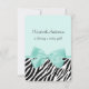 Um chá de fraldas de 3,5"x5", uma menina aquamarina, chic e petite, com uma impressão em zebra de tendência e uma fita de menta aqua, feminina, amarrada em um arco bonito. Personalize este convite feminino para uma bebê de impressão animal, acrescentando o nome da mãe a ser, os detalhes da festa e as informações de contato. Imagem impressa plana, não fita real. Direitos autorais originais de ©PartyPlan