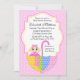 © 2012 Designs socialitas. Comemore com a futura mãe/futura mãe com este convite de chá de fraldas caprichoso. Nosso design tem um dentro de bebê chorão, um guarda-chuva e um borrado. Um convite perfeito para um chá de fraldas para uma menina.