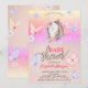 O convite para chás de fraldas bonitos apresenta um boque brilhante com um unicórnio e borboletas. Esses convites para chuveiros de bebês são facilmente personalizados para seu evento simplesmente adicionando seus detalhes.