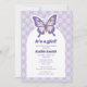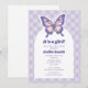 Ilustração de borboleta lavanda, rosa e amarela com fundo de arco e lavanda de tabuleiro.