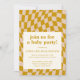 Comemore em estilo com este convite de chá de fraldas inspirado no retrô, com um padrão de verificação de tendências onduladas. Com um texto personalizável e uma paleta de cores calorosas, este design moderno, porém lúdico, dá o tom perfeito para uma celebração divertida e memorável. Personalize os detalhes para torná-lo exclusivamente seu!