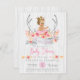 Meninas convidam chás de fraldas tribais com bonito traficantes florais cor-de-rosa e dourados e banner com uma adorável menina loira que veste uma bonito coroa de ouro e tutu cor-de-rosa num fundo de madeira branca rústica. Você pode personalizar facilmente este belo convite tribal boho rústico para seu chá de fraldas ao simplesmente adicionar seus detalhes. Este é um design impresso sem brilho real, etc.